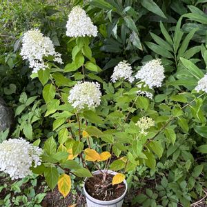 4年目のノリウツギ、今年も咲き始めました💕 うん、かわゆい💕 葉っぱが黄色いのは、やっぱ根詰まりかなぁ😂 鉢がどんどん大きくなってしまう😱 次回の植え替えの時に悩むことにしよう🤣🤣🤣
