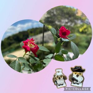 ①挿し木っ子の蔓薔薇カクテル 蕾の時の方がいい感じ🌹 この蔓薔薇、挿し木からの挿し木 発根しやすい子みたいです HCにいたフクロウ船長と海賊 ⚓️🏴☠️ ②すぐ近くの市民の為の花壇に今、モミジアオイが綺麗に咲いてます 夕方には閉じちゃいますねー🍁❤️ 今日の気温は格別37°予想 台風の間に挟まれた高気圧だからだそう 注意しましょー⚠️