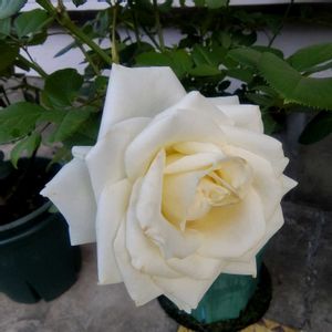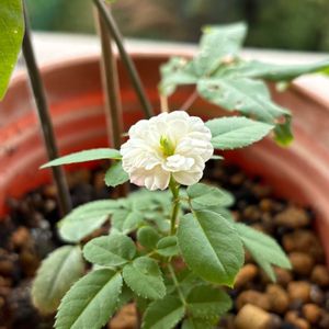こちらも4年前に購入した切花からの挿し木を育てた白バラです。 最初の2年くらいミニバラサイズで育てていた(というか植え替えもあまりちゃんとせず)のですが 鉢増ししたら立派な木立のバラになりました。 花つきもけっこう良いです。 が、白バラの宿命か、スリップスによく入られ😢 綺麗に咲いたらラッキー!と思っています😊