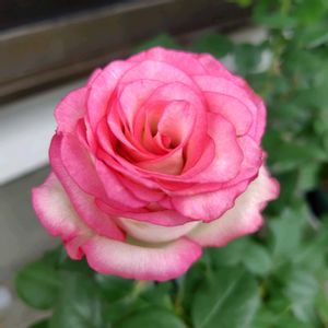 4年前、お店で買ってきた切り花を挿したバラさんです。 切花品種のHTだと思うので 検索して「ジュミリア」というバラに似てる気がするけれどわかりません。 とにかくがっしり、しっかりしてる!お花も木も🥹 そして1輪の開花にすごーく時間がかかります。体感、2週間くらい?😂そしてお花は少ないです。 多分私の育て方が悪かったのですが🥲でも華やかで可愛いバラ🌹だと思います🥰