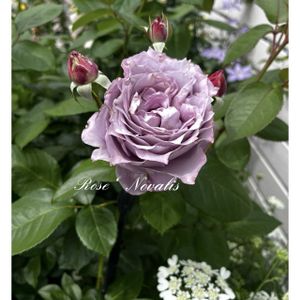 バラ ノヴァーリス💜💗🤍💚 (バラ科) 藤色、宝珠弁咲き…バラの花弁の先端が尖った形状で、花弁が波打つ「波状弁」と微妙なバランスで重なり合う咲き方とか。 ほとんど病気が出ない、驚くほどの耐病性を持つバラのようです😆 ティにグリーンの微香。 名前の由来…未完の小説「青い花」を書いたドイツ・ロマン派の詩人 ノヴァーリスから。全く文学少女ではない私は、聞いたことすらないお方💦ごめんなさい🙏 タカナシ乳業バラ園にて撮影📷