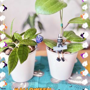 👻ྀི нᵅᒡᒡᵒꛃᵋᵋᐢ🕸️🕷️ ホヤ 2種類 お迎えしました♪ 実は リベンジなんです💦 3年間 育てたホヤ カルノーサ お花も咲いてくれて すんご〜〜く嬉しかったのに… 私のミスで 枯らしてしまい😂 しばらく意気消沈🤣 園芸店で見かけちゃって 2年ぶりに お迎えしちゃいました😋 📛ホヤ ミックスという名前で 4種類売られていて そのうちの2種類 選びました😁 ②多分カリストフィラ 葉脈に惹かれて〜💕 ③大きな葉っぱなんです 色々調べたけど 名前が分かりません💦 グラブラ? ラティフォリア? 今朝 カーテン開けると (⊗△⊗)アァッー! 悲劇がーーーッ!👻💀😱 テラスの多肉棚が見えるのだけど 多肉ちゃんを入れてたケースが ひとつ。。。 棚から落下してて💦💦 鉢が割れてたり 🌵サボちゃん 飛び出てたり😂 せっかく 昨日 植え替えした子たちも 被害にあって、、、🤣🤣 なんて日だ〜😭 今から 後片付け&植え直し 頑張ります〜〜( >﹏< *)