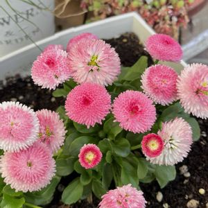 デージー タッソー ストロベリー&クリーム🩷🤍 ピンク~ホワイトの濃淡が きゃわわ🩷🤍 コロンとしたフォルムも💕💕 kumaluluガーデンに 植え付けました❣️