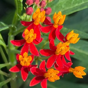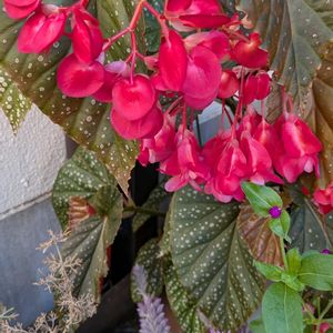 鮮やかな色合いのアスクレピアス(トウワタ)と木立性ベゴニア グリーンセンターで綺麗に咲いていました✨ ベゴニア...一つぶら下がっているのは...? ご愛嬌かな😄