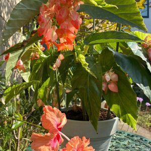 ほんとうに久しぶりの雨が降り始めました🥰🎶 ベコニアとハイビスカスが同じ色だと昨日気付きました、何年も前からいたのにね😅