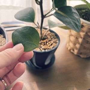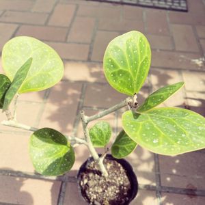 こんにちは♪ フィカスゴールドコイン🌿 小判菩提とも呼ばれます。 ハート形可愛いなぁ〜💕 成長記録〜