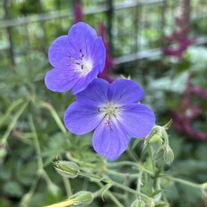 曇り空で、秋を感じる涼しい朝です☁️ ゲラニウムがまたポツポツ咲きはじめました💜 このお花はいつもペアで咲きます ♡(⸝⸝⸝¨)(¨⸝⸝⸝)♡ 仲良きことは美しきかな☺️