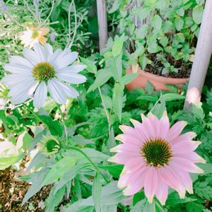 小庭でほぼ放置のお花たち。 手抜きじゃなくて たぶん放置が好きなタイプなの🤭 ①こぼれ種からのエキナセア♪ 小さな芽がまだまだいます👀✨️ ②4~5年目のストケシア🌸 年々少しお花が増える程度で爆増しないところが助かる😙 ヒラヒラがギュッと集まったお花がかわいい🩷 ③どこに植えてもポツポツしか咲かないゲラニウム💜 これでもお花が多いほう🤣 環境があってないはわかっているので、枯れないでくれるだけありがたい笑 ④大好きなハーブ🌿.∘ クラリーセージの花穂が上がってきました٩(ˊᗜˋ*)و♪ ⑤花後カットしたアマリリスから2番花の茎がぐんぐん伸びて、あっという間に咲きました🤍 もう終わりだと思っていたのに、うれしい~🥰