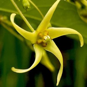 宮城県にも分布がありました❗️ シロバナカモメヅルは毎年見ていましたがよく似たアズマカモメヅルに出会えました! アズマカモメヅル(東鴎蔓) *キョウチクトウ科カモメヅル属 花期は7〜9月 東北〜近畿地方の湿った草地や湿地に生える つる性多年草! (コバノカモメヅルの白花品種) 葉は対生し披針形〜広披針形! 他の植物に巻き付いて伸び、ここではヨシに絡みついていました。 花は淡地緑色〜黄白色! 花冠は星形に5裂し裂片は細長く先が捻れる! (シロバナカモメヅルは捻れない) ①②花弁はスクリューのように! ③後ろから! ④⑤対生する葉! ・全草が有毒です。 (コメントで教えていただきました) ネットのサイトには分布が関東〜近畿地方と書いてあるものも多く、違和感のあるこの花弁で調べて見ると宮城県登米市に発見事例が分かりました! 9月4日撮影 宮城県登米市
