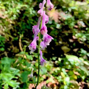 アズマレイジンソウ(吾妻伶人草) 別名 アズマトリカブト *キンポウゲ科トリカブト属 花期は8-10月 東北地方〜近畿地方の主に太平洋側の山地の林内や草地に生える多年草! 高さは30〜150cm (ここの個体は小さめ) 茎や花柄に曲がった毛(屈毛)があるのが特徴的! 葉は腎円形で、5〜7中裂⑤ 花は淡紅紫色〜淡青紫色で総状花序を付ける! 花弁に見えるのは萼片で花は内部にあります! トリカブトと仲間ですから全草有毒です❗️ ・似たレイジンソウは、 花柄や上萼片に開出毛がある! 名前の 伶人草は花の形が雅楽の伶人の冠に似ることから! 9月30日撮影 福島県 伊達市