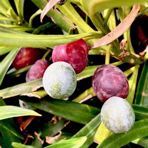 イヌマキ(犬槇) 果実 *マキ科マキ属 花期は5〜6月 関東地方以西の暖地に分布し、潮風にも強く防風林.庭木.生垣として広く利用されている雌雄異株の常緑高木! ここは立派に生垣で、ちょうどかわいい果実が出来ていました。 果実は赤い部分のみが可食で緑の種子の部分は有毒だそうです! ③黒褐色に完熟すると 甘みと食感がいいらしい! ④見事に手入れされた生垣! 東北では見た事の無い生垣でした❗️ 10月8日撮影 🏷️木曜日は木 千葉県山武市