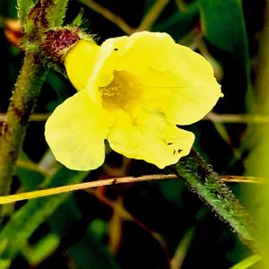 ゴマクサ(胡麻草) *ハマウツボ科ゴマクサ属 花期は8〜9月 関東以西〜沖縄の日当たりの良い湿地に生える一年草! 高さは10〜60cm 全体に剛毛があり葉は披針形て下部は互生.上部は対生! 花は黄色い唇形花! ハマウツボ科の植物ということは、半寄生植物かと思ったのですが、詳細な寄生の実態については明確ではないそうで、謎の多い希少植物のようです❗️ 名前は 花や実の形がゴマに似ている事から! ・ここには案内看板があったので、分かりましたが全く知らないお花でした!(記録して) 環境省 絶滅危惧種Ⅱ類(VU) 10月8日撮影 千葉県山武市