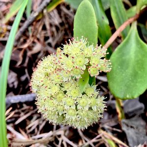チチッパベンケイ(乳葉弁慶) 別名 チチッパベンケイソウ *ベンケイソウ科 ムラサキベンケイソウ属 花期は9〜10月 中部地方北部〜東北地方の多雪地帯に分布する多年草! 一部の海岸(特に岩が露出した磯や崖錐部など)で自生している例も知られていますが、三陸海岸で見る事ができました。 高さは10〜25cm 茎と葉は汚赤紫色を帯び斜上! 葉は厚く多肉質で互生か希に対生! (①②は対生の葉) 花は茎先に散房状花序を出し、淡黄色の星形の5花弁が多数! 雄蕊10本、雌蕊5個! ⑤↙︎にアオノイワレンゲが 間も無く開花❣️ 名前は 乳液が出そうな多肉質の葉と、その色味から名付けられたそうです! 10月19日撮影 岩手県 宮古市