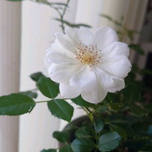 白のミニ修景バラさん✨️ 頑張って繰り返しポチポチ咲いてくれて可愛らしいです☺️🐦