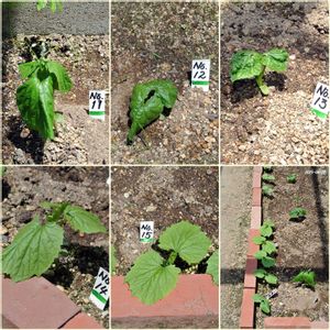 花壇のゴーヤ (6/20) ・育苗ポット苗 №11 12 13 6/19 植付け 🌱 ・花壇 直播き苗 № 14 15 6/7 播種 🌱 本日現在、直まき苗 元気が良いようです。🔶🔷🔶