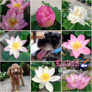 おはようございます😊家から近いお寺に鉢植えの蓮の花を見に行きました🩷とても綺麗で涼しげで最高です🎵去年はコタローと散歩しながら行ったが歩くとちょい遠くて💦💦でも休みに行こうかな🎶お空のミントにも見せたいわ😍虹の日に参加します🤗