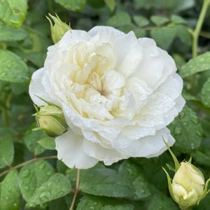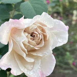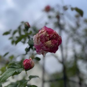 ①今朝は時おり雨がぱらついて、それでもお庭の手入れは続行でしたが…😊 アーチの上の方で咲いてるエドゥアールマネ ②ラブロッシュ つぼみが🐛にくわれてます💦 本当に今年はムシとの戦いがエンドレス ③アリエッタ 涼しくなって断然活気が出てきたアリエッタ‼️ この子は暑いのが苦手です なんなら、北玄関の脇で朝日しか当たらない場所で本領発揮します 日当たりが良過ぎると、葉焼けするし、花付きもよくない感じがします ④プロスペリティ ふんわり柔らかな花びらの雰囲気がとてもいい💓 今年ピエールさんが枯れてしまったから、そこに地植えして誘引しようか、お庭の入口近くにパーゴラを建てて誘引しようか…と検討中 ⑤アンブリッジローズのつぼみとプリンセスアレキサンドラオブケントのコラボ💕 まんまるコロコロのつぼみが可愛くて☺️ どうかこのまま、虫にやられる事なく咲いてください🙏 と朝のパトロールで願うのであった