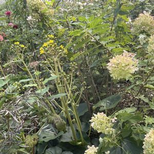 ①ツワブキの花がグーンっと伸びて、黄色のお花が開き始めました いよいよ晩秋突入の気配がしてきました と言ってもまだノリウツギもカットしてなくて、ほんのりピンクに色づくのを見届けようとしてますが… 驚いたのは、ピンクアナベルが今頃また咲き始めてる事 まあまあ大きなお花になりそうで、ちょっとビックリ😳 ②③カフェラテ わりとよく咲いてくれる印象のカフェラテ 冷えてきたからか、赤みが増してます ④⑤ローズポンパドール 今年はイモムシ大発生で、消毒しててもつぼみがかじられたりと、きれいなお花が見られないことが多かったけれど、この子達可愛い💕 ようやく…って感じです😊 明日はお休み お庭の事を午前中に済ませ、1時過ぎからは花友さんがお庭を見にきてくれる💓 その足で以前入ってたボタニカルアートの教室の展覧会に行きます 久しぶりにみんなに会って、作品に触れたらまたきたく描きたくなっちゃうなぁ〜キット☺️