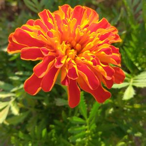 道端 マリーゴールド、キク科 コウオウソウ属(マンジュギク属)の総称、一年草 🌼オレンジのマリーゴールドの花言葉は「予言」