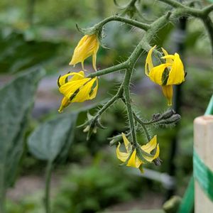 今年初収穫 トマト・キュウリ・ピーマン・ナス 花を付けました よくよく見ると 小さな実を付けています その中でピーマンを2個初収穫です。