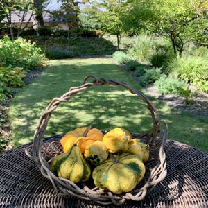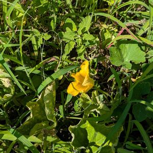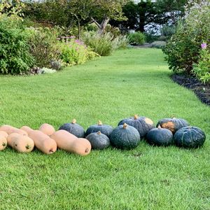 カボチャ いただいた苗からのバターナッツと 捨てた種から蔓が木に登り できた緑色の空中カボチャ! 畑からの贈り物🎃