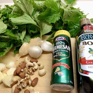 シソのジェノベーゼ & 畑の夏野菜 ①② 青紫蘇でジェノベーゼソース とってもいい香り! パスタにきっと美味しいはず ③せんぜ畑の夏野菜 きゅうりの木4本ですでに700本超え‼️の収穫😳😳