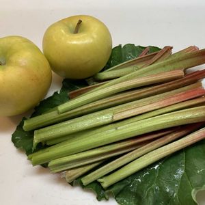 りんご&ルバーブ ①りんごトキと せんぜ畑のルバーブでジャム作り ②圧力鍋で煮ます! なんてきれいでしょう ジャムの写真撮るの忘れた💦