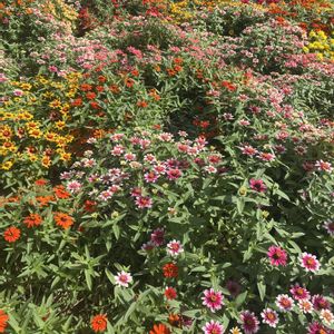 お友達に沢山のヒャクニチソウ(ジニア)が咲いていました⁽⁽٩(๑˃̶͈̀ ᗨ ˂̶͈́)۶⁾⁾ いろいろな色があり、一面綺麗に咲いていました(*˘︶˘*).。.:*♡ ヒメツルソバ(ポリゴナム).。.:*✿ 小さなお花が咲いてきました🌸 我が家の庭へ夏に食べたスイカの種が出てきてお花も咲きました🤭
