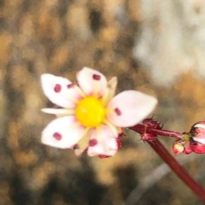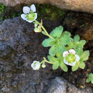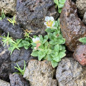 花中心の赤い部分が何だか気になる可愛らしさ。 千島雲間草。 *ユキノシタ科ユキノシタ属 *クモマグサの北方系。「クモマグサ」は雲がかかるほどの高山に咲く花という意味から。 *北海道の高山帯の礫地に生える多年草。雪田跡に多い。 *肉厚で先が尖った長楕円形の葉が根際に集まってつく。葉には固い毛がまばらに生える。中心に盛り上がった子房が目立つ。 本州のクモマグサは葉の先が浅く3裂する。