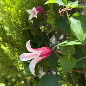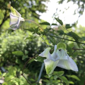 ベル型のかわいいクレマチス ロウグチ 涼しげですね🎐🎐🎐 たくさん咲いてくれました😊