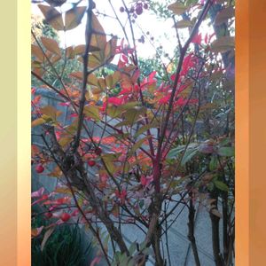 よくみたら 家の南天も 紅葉していました。 😂 ブロック塀の脇です。