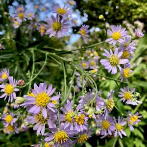 今日のお花✿❀ シオン(紫苑)💟 キク科の多年草🌱 満開🌼の薄紫色の花が🤍💜 秋空に爽やか〜綺麗✨️✨️✨️✨️ 古典の「今昔物語📖」に登場するほど 昔から日本で愛されてきた花❀✿なんですね 💕❤️💕❤️🤍💜🤍💜🤍💜🤍💜❤️💕❤️💕 🏷️彩月(いろどりづき)の青い花2025 🏷️癒やしの薄紫 🏷️愛の花♡