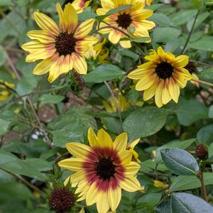 花散歩で✨ 🌻🤍💚🟣🤍💜🩷💜♪ 1️⃣向日葵 2️⃣シャコバサボテン 3️⃣マルバシャリンバイ の実が美味しそうに色づいていました🟣 4️⃣ワルナスビ 5️⃣紫御殿 今日も 笑顔😄で 過ごせますように💐