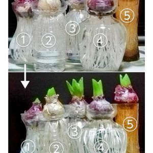 ✿GS 今日のお花✿ 🪻ヒヤシンス 💙💛❤️🩵🩷 ❶上段24/12/2 下段25/1/17 ❷①青 💙3.2 ❸②黄色 💛3.11 ❹③赤色 ❤️2.17 ❺④淡水色 🩵2.17 ⑤桃色 🩷2.17 毎年この時期にヒヤシンス🪻の水耕栽培。 春の訪れと共に綺麗に咲きました🌸🌸🌸 部屋にはほんのりと良い香り〜😉 24/11/16から水耕栽培を開始〜12/1まで段ボールを被せ冷暗所に置く。 部屋に置き、白い根っこを観賞😁 5個の球根のうち3 個が2月中旬、2個が3月上旬にやっと開花🎶 長かったぁ〜😆 楽しい水耕栽培でした❣️