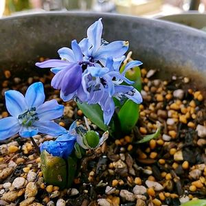 おはようございます😊 クロッカスやムスカリ、次々に花を咲かせて、賑やかな春です。 全滅の原種チューリップの水栽培😭。残る鉢植えの原種チューリップの蕾。頑張れ〜💪。 ムスカリやクロッカスも、水栽培より土に寄せ植えた方が育ち良いです。水栽培の難しさ痛感😣