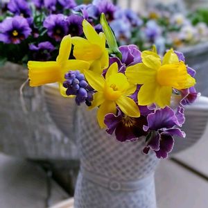 おはようございます😊 我が家の根活、プランター編😆 室内の水栽培より1週間位の遅れ⁉️ムスカリ、クロッカス💛が咲き始めました。スノードロップは終わりのようです。原種チューリップサマンサは、まだ葉っぱだけ•••。咲きますように🍀 ビオラは次々に花を咲かせて、楽しませてくれています。 (2025/3/3撮影)