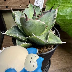 🏷️毎月7日はアガベの日 金剛の鋸歯が楽しみすぎる😆 どんどん展開させたいけど我慢😖 pic① 白鯨 pic② ノーネーム(立派な名前がついてたが偽物だった…) pic③④ 金剛 pic⑤ 集合写真