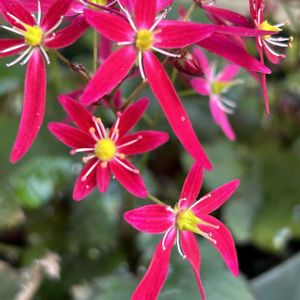 ダイモンジソウ 大文字草 *今日のお花* 花弁が 大 という形になるので名付けられたという事ですが、、、 GSのコメントを見て、自宅のお花をようく見て見たら花弁6枚とか7枚のお花もありました👀 今日初めて気がつきました 日頃の観察が足りないですね😩 3枚目 センリョウ 千両 気がついたらもう赤く🔴なっていました