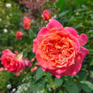 ①挿し木のメアリーローズ とてもいい香り💓 孫1が、幼稚園から帰ると 👦🏻「バァバのお庭に行く‼️」 「今日もお庭の手伝いする💪」と、 頼もしい☺️小さなスコップで、あちこちに穴掘って回るんですけど…😁 メアリーローズの香りをかいで 👦🏻「いい匂い💕」と 散歩をしていた方が声をかけてみえて、お庭を見せてと言われたら、こっちにいい匂いのするお花があるよと、誘導してました😁 ②ウィリアムシェークスピア2000 秋のお花は本当に香りも深くて色も素敵💓 ③クイーンエリザベス すごく背が高くなるクイーンエリザベス このお花は割と低い位置で咲いてくれました ④プリンセスアレキサンドラオブケント どんどんお花の形が整ってきています ⑤イブピアジェ 3年目?株が充実してきたからか、お花の形がすごく良くなってきました 正直最初は香りはいいけどこのお花ではね〜って思ってたけど、これならアリ👍