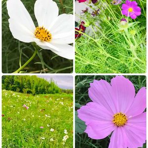 おはようございます〜😄 気のせいでしょうか〜、ここ2〜3日一時の暑さよりチョッピリ涼しいような〜🤍🩵💙 今日は、種まきしたコスモスさんを見てください〜💞💠 ①②のコスモスさんは、一重ですが愛らしくかわいいです〜🤍🩷🩷 ③④⑤は、八重のコスモスさんです〜🤍❤️ 八重は、見た通り一重からすると豪華ですね〜😆⤴️ 白の八重は2種類あり、7月9日に投稿したコスモスと今回のコスモスです〜🤍🤍🩵 同じ八重でも、こんなに見た目や花びらの数が違うのです〜😅🤣⤴️ 今日の八重のコスモスさんは、違う花のようにも見えます〜🤭🎉 赤の八重のコスモスさんも、色違いがあります~🤣⤴️ 少しの色の違いなのですが、やはり違います〜🤭 同じ種袋に入っているのですが、色々な違いを見つけるのも楽しみの1つですね~😄✌️🎉 コスモスをみていると、直ぐそこに秋が来ているんだと錯覚してしまいますが、夏真っ盛りです〜😭⤵️ 涼しい日があっても、まだまだ暑さは続きます〜🤍🩵💙 皆さん、ご自愛を〜〜🤍🩵💙
