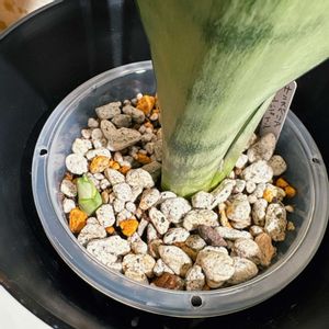 サンセベリアの根元に小さな芽を発見!!可愛い😍 むかーし枯らした経験ありなので新芽はより一層嬉しい👍