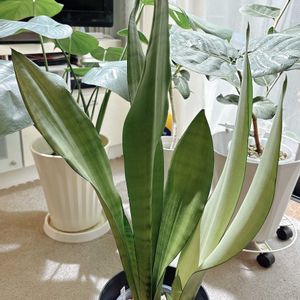 2025.6.22 身長1m超😵 のっぽさんなサンセベリアゼラニカ なんとこれで440円! ほぼ私の園芸顧問となっているいつものスーパー併設花屋さんで、売れ残った大鉢を解体して一本ずつバラ売りしてました これから植え替え予定のムーンシャインと比べてもビックリの大きさ😲