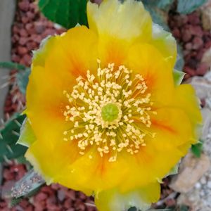 国内入手苗 opuntia santa rita 去年の10月にご紹介させて頂いた santa rita の大苗が初めて開花致しました。 イエローカラーの花弁に中心部からオレンジカラーの筋が入ったような大きくてボリュームのある可愛らしい花です。 本日メルカリにて新たにオプンチアを出品致しました。 全て1苗のみの出品となります。 宜しければご検討下さいませ。