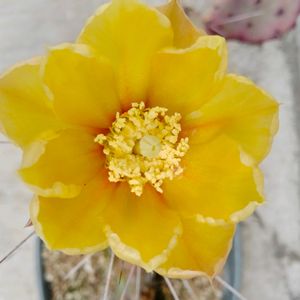 国内入手苗 opuntia santa rita も開花致しました。 先日ご紹介させて頂いた santa rita とは異なるタイプの santa rita で棘が非常に長くグラデーションカラーでとても綺麗で格好良いオプンチアです。 花も大きく力強いイエローカラーで妻の大のお気に入りです。