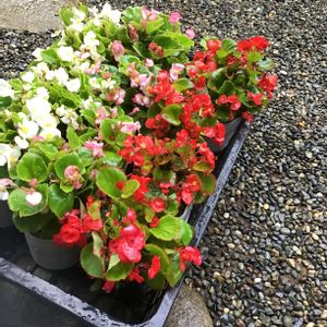 夏場、お花🌸も だいぶ 傷んだり、枯れたりして 咲いてる花も 少なくなって、 何か 補充したい💓と、考えていました‼︎ そんなに 悪くなってない ベゴニア センパフローレンス、半額で 売ってたので これ、ちょうど 良い〜💓 3色 あって、いろんな場所に 植えるのに ピッタリ〜💕 各色、4つずつ入っていて、超お買い得でした〜‼️^_^ 新しいベゴニアセンパフローレンスが入荷したみたいで、、、でも すでに 売場で ずっと 有った分かも 知れないけど、 思ったほど、何も 悪くなってない。。。