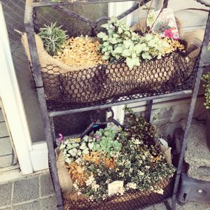 アンテークなポストを外して下の段に花を植えてみました ポストはまだリメイクしてないので 近いうちにリメイクして花を植えまーす