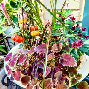 ハロウィン🎃の寄植え ケイトウもヒメコリウスも茂ってきました。 ソラナムパンプキンが効いてます。
