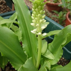 今朝は曇り☁風もあり、気温より寒く感じます。 パイナップルリリーの花が咲きそうです。 葉っぱ🌱は凄く増えました。 今年初チャレンジのパイナップルリリー5月7日に発芽して7月3、8日開花記事アップしました。 2度目の花が咲きそうです。 冬場は枯れて球根を掘り上げるのかと思ってますが、葉っぱ🌱はモリモリになって植木鉢がぎゅうぎゅうです。