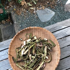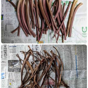 こんばんは~🌠 夕方、雷と凄い☔が、降りました。 水やりが助かりゆっくりとくつろうでいます😊😊 さて、これはなんでしょう‼️ 実は昨日、赤色の里芋の茎を頂き、煮るのも良いんですが、なき母が乾燥させて、食べさせてくれた事を思い出して……… 所が☔がふり、仕方がないので、私の部屋で干しています😊 どうなるかな🤔 明日の天気になります‼️