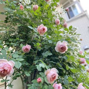 ウイリアムモリスとノイバラが咲きました🥰 ウイリアムモリスとコンビを組んでるノイバラはテッポウムシの為、小さくなってしまいましたが、復活して頑張ってくれてます(* ॑꒳ ॑* )
